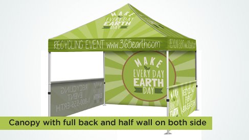 Canopy is printed and sewn Weather Resistant Tent Polyester. Print your brand message on each of the four peaks and valance panels. Our large format full color capabilities take artwork seam to seam unlike competitor tents that rely on small vinyl applications.