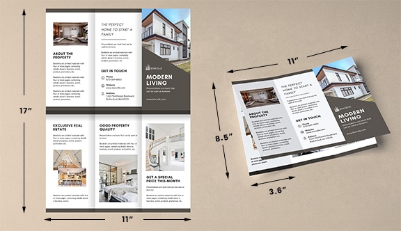 Folded Size (i.e. Half Fold then Tri-Fold): 1st Half Folded to 11x8.5 (width x height) and then Tri-Folded to 3.6x8.5.