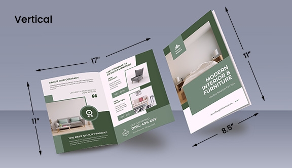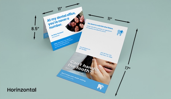 Portrait: 11x17 inch half folded to 11x8.5 inch