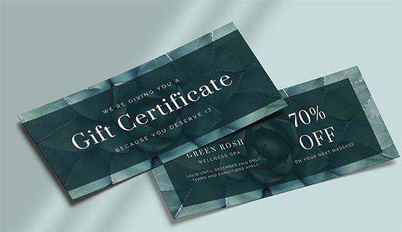 Gift certificate printing is a low-cost way to promote your services and bring in new revenue at the same time. People have always enjoyed receiving gift certificates, but these days, people enjoy giving them, too