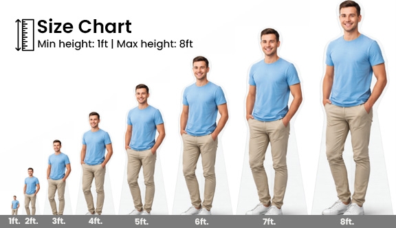Bring your brand, event, or message to life with custom Life-Size Cutouts & Standees from PrintPapa. These full-color, high-impact displays are printed on durable rigid material and cut to the shape of your design, person, mascot, product, or character. They are ideal for drawing attention in retail spaces, trade shows, parties, corporate events, and promotional campaigns. These standees are a fun and effective way to engage customers and guests.