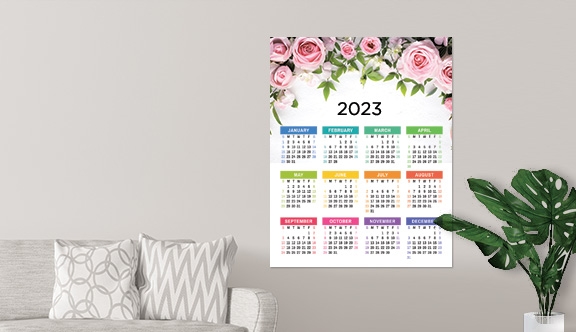 A poster calendar is a type of calendar that consists of a single large sheet of paper that displays all the months of the year in a single view. Poster calendars typically feature large, bold numbers and graphics for easy viewing, and they may include important dates, holidays, or other events.